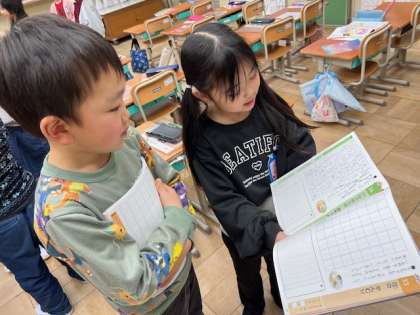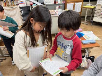 おさんぽ交流で、いろいろな友達の意見を交流します。