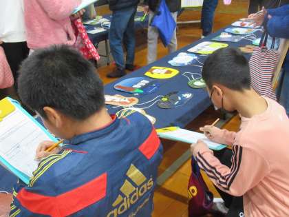 自分たちの作品をまずは見て、そこから他の学年の良いところを見つけにいきました。