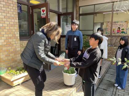 メッセージを付けてお渡しに行きました。みなさんおいしいと喜んでくれて、子どもたちもまた、嬉しい気持ちです。