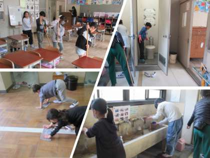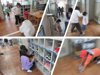 子どもたちも負けじと一生懸命、教室やその周りをきれいにしています。
