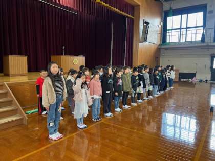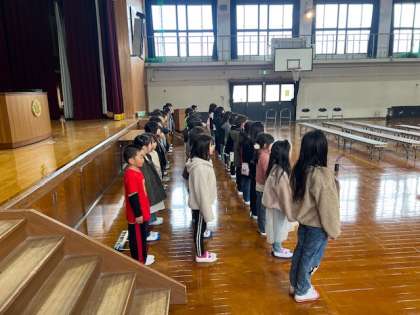 入学式の練習も最後です。今日は校長先生にも見に来ていただき、緊張感をもって練習に臨みました。