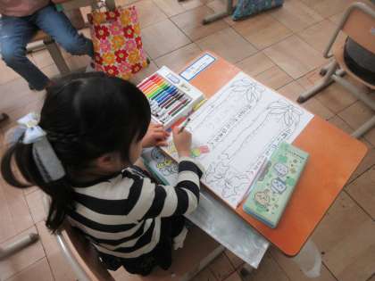 みんな 「座り方」と「えんぴつの持ち方」に気をつけながら、一生懸命描くことができました。