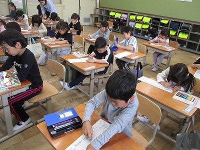 お手本をよく見ながら、「なまえカード」に名前を書くことができました。
