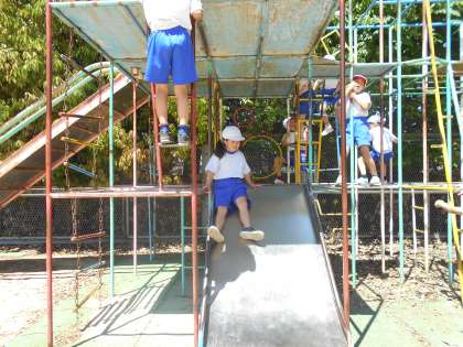 初めて総合遊具の3階まで行き、楽しそうにしている子どもたちでした。