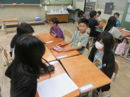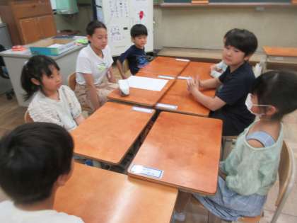 初めてグループのみんなで集まり、1年生は緊張している様子でした。