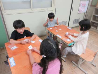 【1年】 算数 「いくつといくつ」 公開日 2024/06/03 更新日 2024/06/03 学校の様子 算数の「いくつといくつ」の学習を頑張ってます。 「10はいくつといくつかな?」と考えながら 数字のカードでゲームをしました。