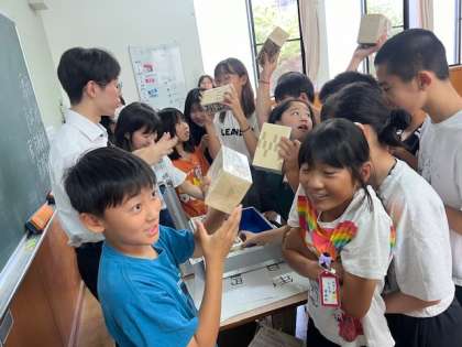 札束の見本を見せていただき、大興奮の子どもたちでした。