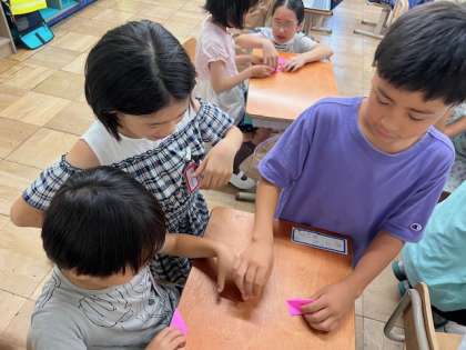 全校に折ってもらった鶴は責任をもって千羽鶴へと仕上げます!