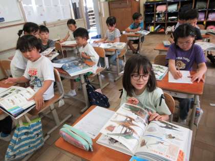 国語で辞典の使い方を学習しました。自分たちで索引や目次から調べる方法を学び、それぞれに知りたいことを決めて楽しんで調べていました。