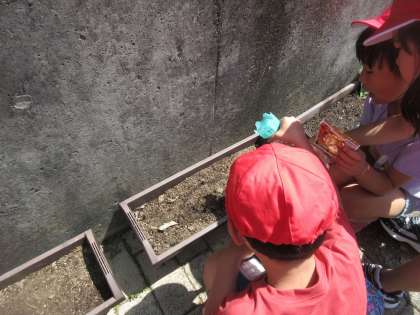 「早く大きくなってね。」「どんな花が咲くのか楽しみ。」