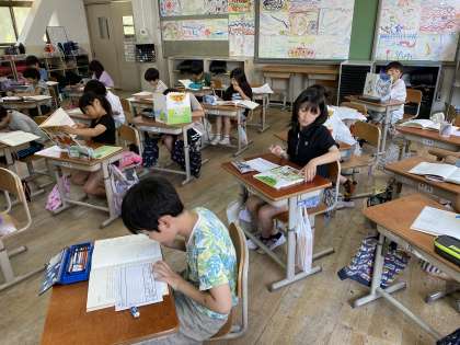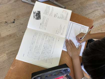 授業の後半では、実際に科学読み物を使い、情報カードに大切だと思うことを書き出していました。