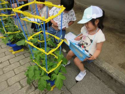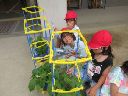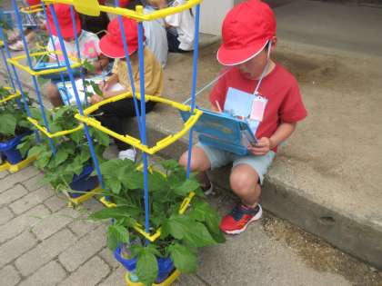 子どもたちもつるの先までしっかりと観察しました。