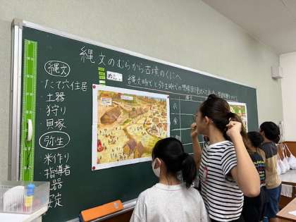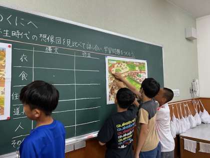 歴史の学習が始まりました。縄文時代と弥生時代のくらしの様子をくらべて、気付いたことや考えたことを話し合いました。