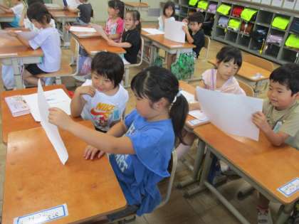 自分の好きなことをかいた「すきなことカード」を友だちと交流しました。
