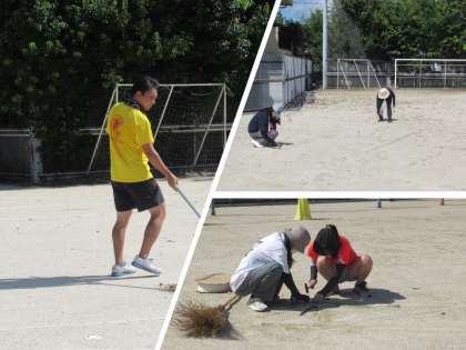 熱中症対策をしながら教職員で環境整備を行いました。
