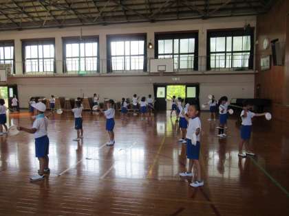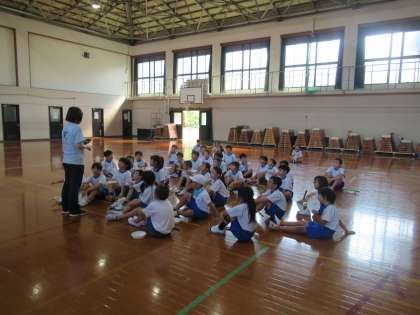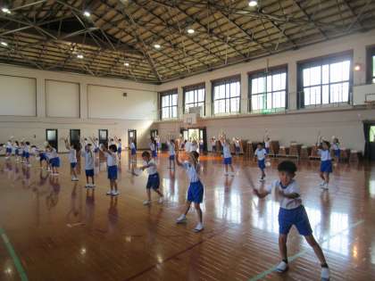 1時間目に体育館で練習をしました。