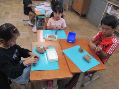 【1年】図工「いっしょにおさんぽ」 公開日 2024/10/17 更新日 2024/10/17 学校の様子 ねん土で自分と一緒にお散歩したい動物や生き物をつくりました。 つくった後は、実際にお散歩したい場所に行って写真を撮りました。 楽しいおさんぽの時間になりましたね♪