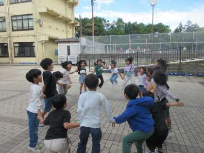 外に出て、「天まで とどけ、 一、ニ、三。」と