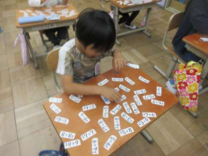 計算カードを使って、繰り上がりのたしざんに慣れる学習をしました。