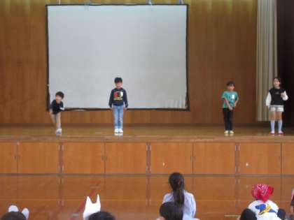 1年生は音読劇をします。