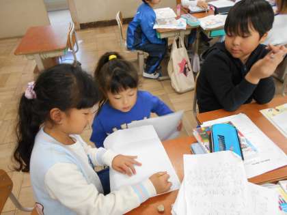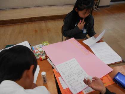 まちたんけんに行ってわかったことや、インタビューをして気づいたことをポスターや新聞にまとめています。クイズを作っているグループもあります。ほかのグループに紹介するのが楽しみですね。