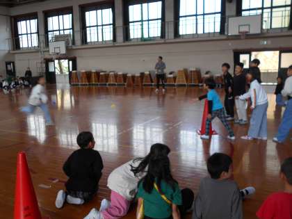 クラス対抗で折り返しリレーをしました。