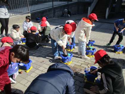チューリップの球根を植えました。元気に育ってくれるように、土をふかふかに耕して、そっと植えました。アサガオと違って、どんなふうに成長していくのか楽しみですね♪