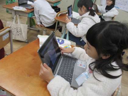 詩に登場する動物になりきって、詩を読みました。何回も読みながら読み方を確認するためにタブレットで録音しました。一番上手に読めたものを友だちにもたくさん聞いてもらいました。