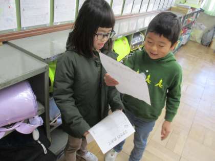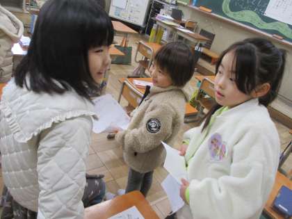 【1年】学活「3学期のめあて」 公開日 2025/01/15 更新日 2025/01/15 学校の様子 3学期に頑張りたいことを書いて、友だちと交流しました。「どうしてこのめあてにしたの?」と聞かれて、「〇〇だからだよ。」とわけも答えられるくらい、これまでの自分を振り返りながらめあてを考えることができました。