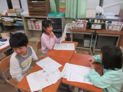 冬休みに頑張ったにこにこ大作戦について友達と交流しました。