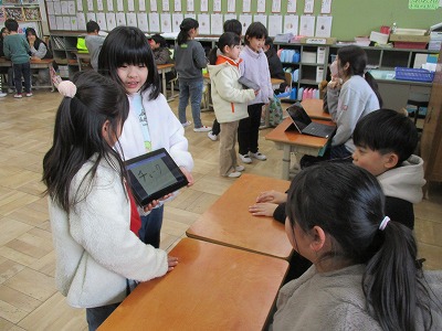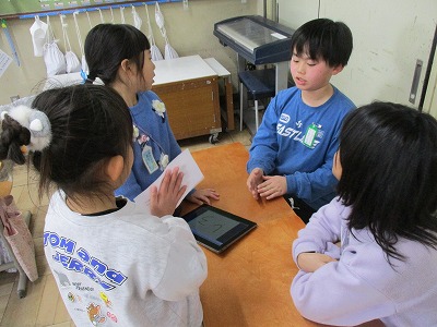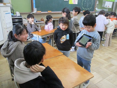 【1年】国語「これは、なんでしょう」 公開日 2025/01/30 更新日 2025/01/30 学校の様子 4年生を招待して、「これは、なんでしょう」クイズ大会をしました。クイズを出す人も答える人も「わくわく」した気持ちになれるようなクイズを、二人で相談してつくりました。4年生にも楽しんでもらえて、クイズ大会は大成功でした♪