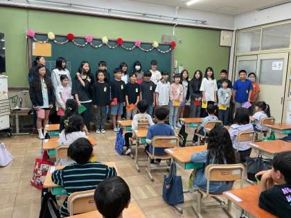 今日はなかよしグループの6年生が教室に来て、一緒に遊んでくれました。1組2組それぞれに楽しい企画を考えてくれていました。また一緒に遊ぶのが楽しみですね。