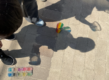 とうめいなものを使って,色を塗り,カラーセロハンをはって,太陽の光にあててみました。光にあてるといろいろな色や形が見えてきました。