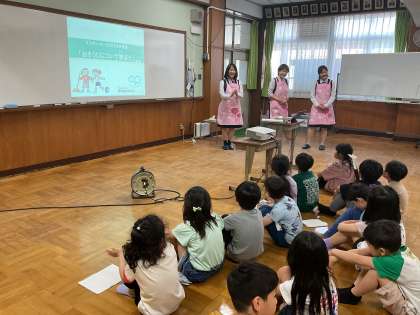 今日はダスキンさんに来ていただき、正しいお掃除の仕方について教えていただきました。ほうきやちりとりの使い方、ぞうきんの絞り方など基本的なことを教えていただきました。またおうちでも、一緒にお掃除をしてみてください。