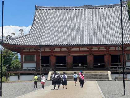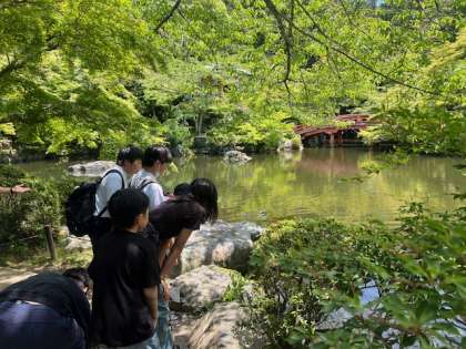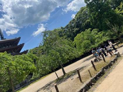 【6年】下庄小学校 交流会 公開日 2025/05/29 更新日 2025/05/29 学校の様子 学校での顔合せのあとは、醍醐寺ツアー★ 醍醐小の6年生はツアーガイドとなり、準備してきたそれぞれの見どころを紹介しながら進めていました。