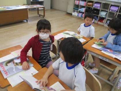 日本の昔話の本をたくさん読んで、お気に入りの話を紹介し合いました。