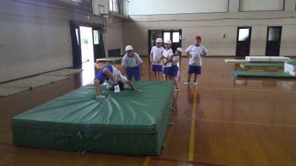 体育では,マット運動に挑戦しています。