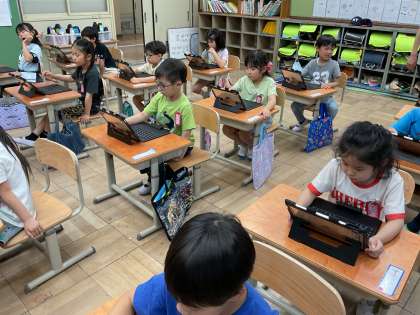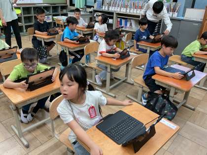 iPadを使ってミライシード(学習ドリル)の使い方を学習しました。初めて使ったので、ログインの仕方から頑張りました。お話をよく聞いて使うことができていましたよ。これからたくさん使う機会があると思うので、大切に使ってほしいと思います。