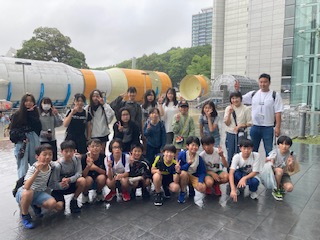 名古屋科学館に着きました。クラス写真、グループ写真を撮って、グループで館内を回ります。