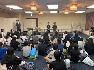 ホテルに到着しました。ホテルの話を聞いて、部屋に入ります。