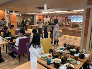 ホテルの夕食は豪華です。みんなでいただきます!