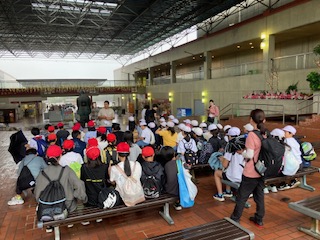リトルワールドに着いて、学年写真を撮りました。ミールクーポンをもらって、グループ行動の開始です。