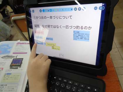 【5年】水産業のさかんな地域 公開日 2025/09/04 更新日 2025/09/04 学校の様子 日本のまわりの漁場の特徴や施設について調べました。また、どこでどのように魚をとり、どのような問題を抱えているかについても明らかにしていきました。