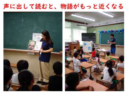 子どもたちが物語の世界にふれる時間を大切にしたいと考え、学校では「読み聞かせの日」を設けています。