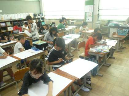 お話を聞いて、自分たちで想像したお話を絵に表現します。