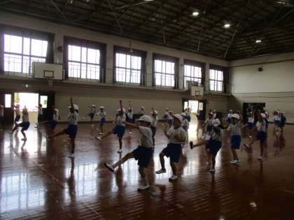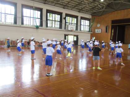先生のお手本を見ながら、一生懸命にダンスを覚えています。