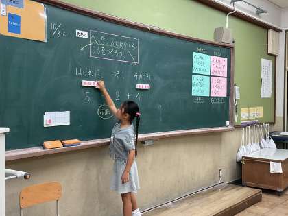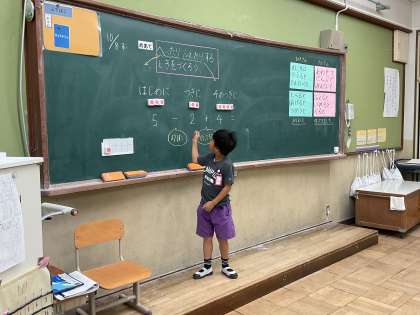 3つの数がでてくる計算をしました。数図ブロックを使って、上手に説明できる人が増えています。