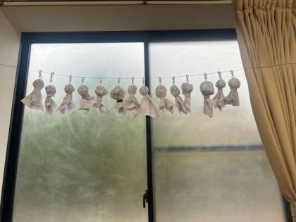 天気が怪しかったので、てるてる坊主をつくってお願い!