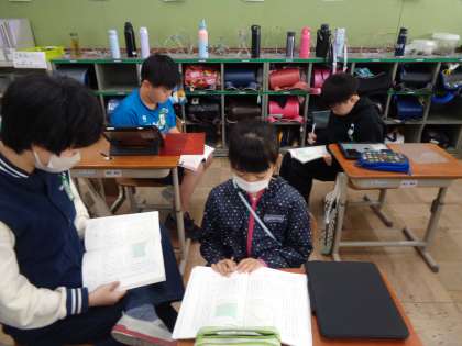 【5年】国語の授業 公開日 2025/10/29 更新日 2025/10/29 学校の様子 説明的文章「固有種が教えてくれること」の学習をすすめています。今日は、どの資料(表・写真・グラフなど)が、どの段落のどの部分に対応しているかを、隣の人と確認したり、ロイロノートにまとめたりしました。
