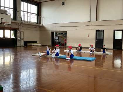 マットあそび2回目です。ゆりかご、まるた、前転がりなど、ころころ技に挑戦しました。